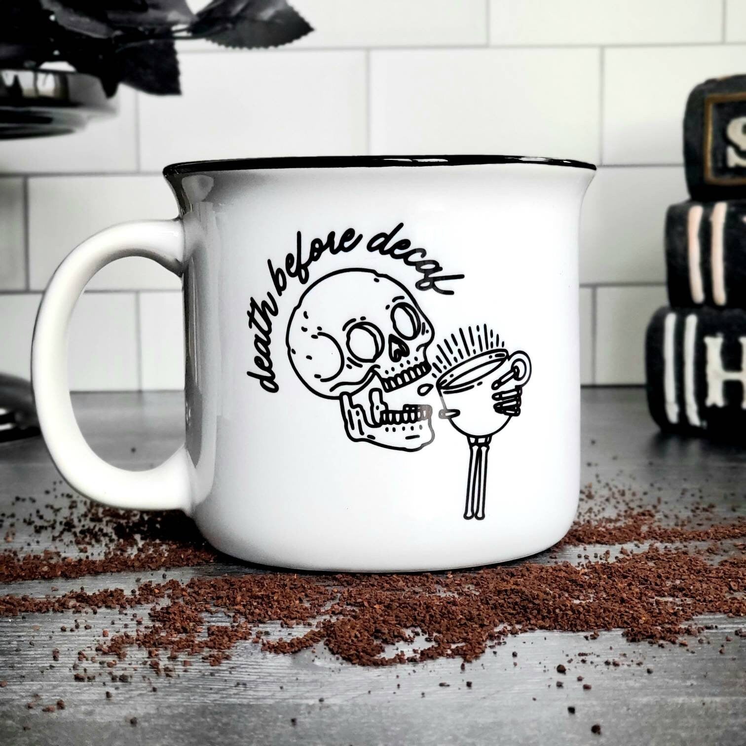 15 Oz Ceramic Camping Mug- Death before Decaf